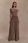 The CARLEY Off Shoulder Knit Top is a sleek knit essential redefined with directional detailing. Designed with an off-shoulder neckline and asymmetrical shape, it frames the décolletage with subtle drama. The fitted silhouette is balanced by a ribbed waist panel for structure, while the open back is finished with a hardware accent that adds a polished edge. Sleeveless and streamlined, this top is a modern staple for day-to-night styling.