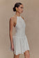 The CARLINA Broderie Mini Dress is your warm-weather wardrobe essential, blending effortless femininity with timeless structure. Designed with a tie halterneck and flattering drop waist, this A-line silhouette skims the body before flaring gently into a mini-length hem. Crafted from intricate broderie and fully lined for comfort, this dress features an invisible side zip for a clean finish. Whether styled with slides for sun-drenched days or dressed up for garden soirées, it’s a piece that moves with ease from moment to moment.