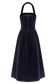 The CAROLINE Denim Halter Midi Dress is a bold fusion of structure and femininity. Designed with a sleek halter neckline that fastens with buttons at the back, this dress creates a sculpted, sophisticated silhouette. Front and back seams enhance the fit, contouring the body before flowing into a flared skirt from a fitted drop waist. An exposed back zipper adds a modern edge, making this dress the perfect choice for effortless day-to-night dressing with a touch of denim elegance.