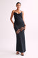 Lace Detail Satin Maxi Dress - Black