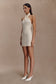 The CHRISTINA Cross Over Mini Dress is defined by its striking halter neckline that crosses at the front and fastens with a secure back button closure. Princess seams shape the fitted bodice, while the bodycon silhouette flatters the frame and falls to a mini length for a confident finish. Fully lined and completed with an invisible centre back zip, this dress is a statement of modern sophistication—designed to turn heads from every angle.