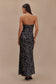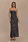 Strapless Satin Maxi Dress - Black Polka Dot Print