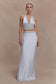 The CLEMENTINE Chiffon Hand Beaded Maxi Skirt pairs fluid movement with considered detail. Designed in a sleek column silhouette, it elongates the frame while allowing the chiffon fabrication to move with effortless grace. A contrast waistband sharpens the finish, creating subtle definition at the waist. Fully lined for comfort and secured with an invisible side zip, this maxi-length style balances delicacy and structure — refined, directional, and quietly striking.