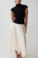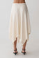 The CORALIE Asymmetric Satin Midi Skirt is designed to flow with effortless precision. Crafted in fluid satin, it drapes into a directional handkerchief hem that creates movement with every step. The midi length balances polish with ease, while a discreet side zip maintains a clean finish through the waist. Unlined for a lightweight feel, this silhouette delivers modern femininity with an edge of asymmetry.