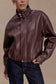 The CURTIS Faux Leather Bomber Jacket reimagines a wardrobe staple with a sleek, refined edge. Designed with a mandarin collar and front and back panel lines, it creates a clean, structured silhouette. The boxy fit adds a modern proportion, while a concealed front zipper placket and three snap buttons at the collar and hem ensure a polished finish. Fully lined for comfort and longevity, this jacket pairs effortlessly with both denim and tailoring for a timeless off-duty look.