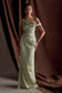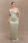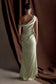 Off Shoulder Satin Maxi Dress - Sage
