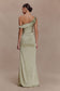 The DALIA Off-Shoulder Satin Maxi Dress is a statement of modern sophistication. Designed with an asymmetrical draped neckline, this sleeveless silhouette exudes effortless glamour. The fitted, boned bodice provides structure and support, while the gathered hip detail enhances the figure with soft, sculptural draping. Crafted in a fluid satin fabric and finished with an internal elastic waist stay for a secure fit, this maxi-length gown moves beautifully with every step. A discreet side zip and hook-and-eye closure ensure seamless wear, making this dress perfect for elegant soirées, black-tie events, or bridal celebrations.