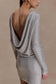 The DARIUS Diamante Cowl Mini Dress blends effortless drape with after-dark allure. Featuring a soft boat neckline that falls into a diamante-trimmed cowl back, it creates a striking silhouette from every angle. The bloused top contrasts with a fitted mini skirt, accentuating the waist with subtle volume and balance. Finished with long sleeves and an elasticated waist for ease of movement, this dress is made to shimmer from first impression to final exit.