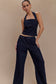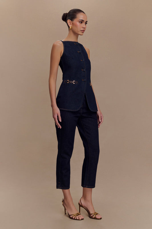 The DAYNA Denim Halter Top is a sleek, structured take on denim that’s perfect for day or night. Featuring a halter neckline and a fitted silhouette, this top boasts bust and princess panel seams for a contoured fit. The side zip makes for easy wear, while grip tape along the neckline keeps it comfortably in place. Style it with high-waisted jeans or the matching Caitlin Mid Rise Denim Flare Jeans for a statement look that’s effortlessly cool.