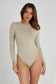 Recycled Nylon Long Sleeve Crew Neck Bodysuit - Taupe