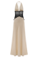 Turn heads in the DINAH Lace and Satin Maxi Dress, a romantic silhouette that blends soft textures with sultry details. Featuring a halter tie V neckline and softly gathered bust, this dress flows into a sheer lace body that skims the figure with ease. The low back adds a touch of drama, while the maxi length and invisible zip create a seamless finish. Partially lined for subtle coverage, this dress is the epitome of slip-on elegance with an irresistible edge.