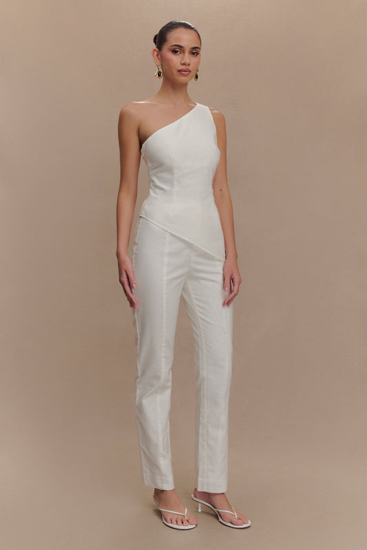 Elevate your wardrobe with the DORA Linen Pants, designed to bring effortless sophistication to any look. With a flattering high-waisted fit and a sleek side zip for a seamless finish, these pants offer a refined silhouette perfect for day-to-night styling. The straight-leg cut adds a touch of modern elegance, while the breathable linen fabric ensures comfort with every wear. Pair with the Dora Linen One Shoulder Top for a perfectly coordinated, chic ensemble that’s ready for any occasion.