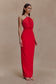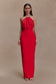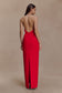 The ELINA Satin Necklace Maxi Dress is a statement silhouette defined by fluid textures and refined detailing. Designed with a draped halter neckline secured by a chain necklace closure, it blends softness with an edge of modern polish. A contrast satin bodice falls into a crepe skirt base, cinched at the waist to sculpt the frame. Fully lined for comfort, this dress is completed with a centre back invisible zip and split for ease of movement. The result: a piece that feels as striking as it looks.
