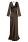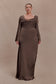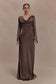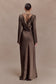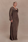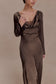Long Sleeve Cowl Lace And Satin Maxi Dress - Mocha