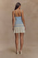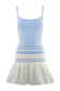 The ELLISON Contrast Knit Mini Dress is your go-to for flirty, fun styling with a modern twist. Featuring a scoop neckline and striking back cross-strap detail, this fitted silhouette hugs the body before flaring into a frilled lower skirt. Bold contrast stripe detailing adds a graphic edge, while the unlined knit keeps it light, breathable, and ready for warm-weather days. this dress is perfect for weekend plans, sunlit strolls, and everything in between.