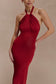 Slinky Halter Maxi Dress - Deep Red