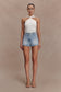Mid Rise Denim Shorts - Washed Light Blue