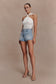 The ERIN Mid Rise Denim Shorts refine classic denim through clean construction and directional detail. Designed with a mid-rise waist and subtle A-line shape, they create a flattering, elongating silhouette. A waistband-less design keeps the finish sleek, while front and back belt loops with button detailing add considered edge. Complete with a fly-front closure, this pair delivers modern polish with everyday versatility.