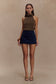 Make a bold statement in the FALLON Denim Micro Mini Skort, a mid-rise design that fuses the look of a skirt with the comfort of shorts. The micro mini length adds edge, while the asymmetrical front belt detail brings a fresh, fashion-forward twist. Perfect for day-to-night styling, this skort is equal parts playful and practical. Pair with the Fallon Cropped Denim Jacket for a coordinated denim moment that commands attention.