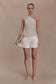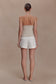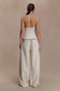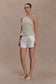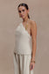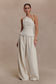 The GABBY Asymmetrical Neckline Linen Beaded Top brings directional detailing to a clean, contemporary silhouette. Crafted with an asymmetric neckline, it features a beaded tie that wraps around the neck and drapes across the right arm — creating a striking, sculptural moment. Fully lined for comfort and structure, this full-length top is finished with an invisible zip closure for a seamless fit. Elevated and artfully refined, this top is designed to stand out through subtle sophistication.