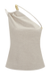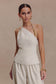 Asymmetrical Neckline Linen Beaded Top - Natural