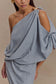 The GABRIELLA Drape Mini Dress is a statement in sculptural elegance. Designed with a one-shoulder silhouette, this mini dress features a left sleeve with a striking shoulder cut-out and a pleated right armband for added texture. An asymmetric hem adds fluid movement, while sleek hardware at the shoulder seam brings a polished edge—easily removable for washing via discreet loops. Fully lined with an invisible side zipper for a smooth fit, this dress is your go-to for nights that call for bold, modern glamour.