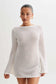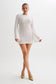 Introducing the GALILEA Knit Mini Dress, a masterpiece of modern sophistication and timeless style. With its boat neckline, this dress offers an elegant silhouette that frames the collarbones with grace. Featuring long flared sleeves, it adds a touch of drama and movement to your ensemble. The bodycon fit hugs your curves in all the right places, while the mini length exudes chic allure. Designed with long sleeves for added elegance, and a back keyhole with a functional button for a stylish accent. Crafted with a special knit design, it showcases intricate craftsmanship and attention to detail. Whether you're attending a cocktail party or a special occasion, the Galilea is sure to turn heads with its undeniable charm and sophisticated flair.