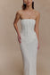 The GEMMA Strapless Embellished Maxi Dress is designed to dazzle. Featuring a strapless neckline and bodycon fit, it sculpts the silhouette with internal boning and a built-in bodysuit for confident, secure wear. Hand-applied beaded embellishments catch the light with every step, while the stretch fabrication ensures ease of movement—no zips required. Partially lined for comfort and allure, Gemma is made for evenings that demand a little extra sparkle.