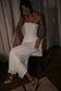 GEMMA is a strapless, full-length maxi dress with mesh lining and sequinned fabrication. Fashionably flashy, it has a fairly daring look with a stretchy mesh base and a sewn-in undergarment that's slightly visible. Cut from pure polyester and lined with MESHKI elastane blend, this dress is comfortable and sturdy. The silhouette is a fairly simple cut in order to fully show off the intense detailing, like the full-body beading, corset-like panelling at the bodice, and clean, fitted skirt.