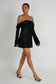 Off Shoulder Satin Mini Dress - Black