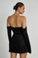 The GISELLE is an off-shoulder long-sleeve mini dress that’s been designed to deliver playful opulence. Whether you’re an off-duty bride, or simply looking to create a casually regal moment on your next night out, the GISELLE is the perfect fit. Crafted using a twisted viscose fabric highlights the off-shoulder neckline. Flared sleeves with split cuffs and a side leg slit cut through the silhouette, adding texture and drama to the visuals.