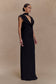 The GIULIA Chiffon Draped Maxi Dress is a breathtaking display of fluidity and grace. Designed with a deep cowl neckline at both the front and back, this silhouette drapes effortlessly for a touch of timeless allure. The fitted waist creates a flattering shape, while the gathered overlay detail at the hip adds soft dimension. A flowing hip sash enhances movement, complementing the airy chiffon fabrication. Sleeveless and maxi in length, this dress is the perfect choice for elegant soirées, formal occasions, or modern bridal moments.