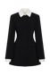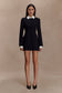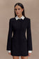 The GRETCHEN Suiting Mini Dress takes suiting into modern territory with removable detailing for versatile styling. Featuring a sharp white collar and cotton sleeve cuffs that can be detached for a cleaner finish, it’s framed with long sleeves and shoulder pads for structure. The button-front opening is concealed with a sleek placket, while non-functioning pocket flaps add polish. Fully lined and cut to a mini length, this dress is the perfect fusion of tailoring and femininity.