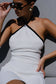 Contrast Halter Knit Mini Dress - White