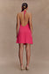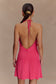 The GWENDA Satin Floral Mini Dress is a sun-ready statement, crafted for romantic getaways and standout summer moments. Made from airy chiffon and cut on the bias for fluid movement, it features an asymmetric cowl neckline and a halter tie adorned with delicate floral appliqués that frame the collarbone. A centre back invisible zip ensures a smooth finish, while the mini length keeps things flirty and fresh. Fully lined for comfort, this dress is the perfect piece for afternoon soirees, golden hour dinners, or dancing under the stars.