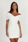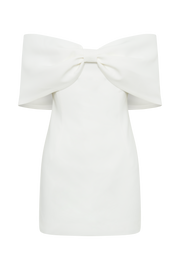 Non-traditional but oh-so-romantic, this is the dress for brides looking to make a statement on their special day. Featuring an off-the-shoulder bow to flatter the décolletage, paired against a minimalist mini dress, this is a dress that plays with dimensions.