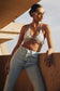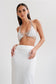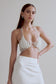 The HALSEY Pearl Bralette has been meticulously designed to be a standout piece in your party wardrobe. Crafted from our shimmering organic shaped pearls, each connected with firm chaining, the top leads from a flattering triangle cut shape into a halter neck. All securely fastened with a loop and lobster clasp at the neck and underbust. Pair with your favourite MESHKI denim jeans for the perfect look.