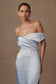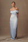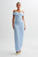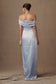 Off Shoulder Satin Maxi Dress - Cornflower Blue