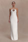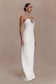 The HILDA Embellished Strapless Maxi Dress is designed to command attention through structure and detail. Featuring a softly curved strapless neckline, it highlights the décolletage with a crystal-embellished cut-out at the bust for a considered point of shine. Crafted in bonded crepe for a smooth, sculpted finish, this dress is fully lined and fitted with internal boning and a waist stay for enhanced support and shape. A centre-back invisible zipper ensures a seamless fit, while a back split allows ease of movement through the maxi-length silhouette. Composed, confident, and quietly striking, this dress is made for moments that linger.