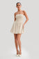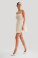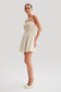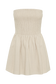 The HOLLAND is a linen mini dress designed with a shirred bodice that meets a gathered skirt, creating a playful silhouette.