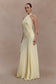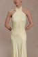 Gathered Slinky Halter Maxi Dress - Lemon