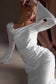 The IRIS Long Sleeve Satin Maxi Dress is a statement of refined elegance. Designed with an asymmetrical neckline and a gathered bust overlay, this silhouette drapes beautifully while enhancing the figure. The fitted, boned bodice provides structure and support, while the gathered hip detail adds soft dimension. A flowing maxi-length skirt completes the look with effortless grace. Finished with an internal elastic waist stay for a secure fit and a back zip with hook-and-eye closure, the Iris dress is perfect for formal occasions, black-tie events, and unforgettable moments.