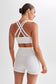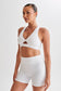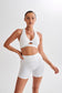 Meet the JACKIE Twist Crop Top, a pinnacle of style and support in the realm of activewear. The V neckline and captivating twist front detail exude modern sophistication, while the criss-cross strappy back adds a daring edge to your workout ensemble. Designed for high-impact activities, this crop top features an elastic under bust band, providing optimal support and a secure fit. Revel in the centre front cutout, a bold statement of confidence and style. With an inbuilt supportive bra and removable cups, you can customise your comfort. Boasting a high support level, the Jackie Twist Crop Top combines functionality with a super-soft hand feel and 4-way stretch fabric, ensuring you move with ease and style during every workout. Pair with the Briar V Back Leggings With Pockets to complete the look.