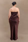 The JASMINE Strapless Satin Maxi Dress is the epitome of refined glamour. Designed with a softly gathered bust overlay, this strapless silhouette creates a romantic yet sculpted effect. The boned bodice provides structure and support, while the gathered hip detail enhances the figure with elegant draping. A maxi-length skirt flows effortlessly, ensuring graceful movement with every step. Featuring an internal elastic waist stay for a secure fit and a discreet side zip with a hook-and-eye closure, this dress is perfect for formal occasions, evening events, and modern bridal moments.