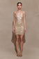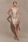 The JASMYN Hot Fix Mini Dress With Mesh Back is designed for high-impact moments. Featuring a scoop neckline and mesh straps, it’s finished with sheer back panels that fasten with a button and keyhole closure. The scratch mesh base is adorned with hotfix embellishments, catching the light for a statement sparkle. An open back detail and mesh lining ensure balance between allure and comfort. Cut to a mini length, this dress delivers modern glamour with a sleek finish.