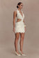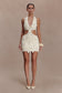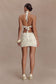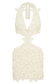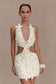 The JAYLENE Floral Crochet Mini Dress is designed to balance artisanal texture with a sculpted silhouette. Featuring a V neckline and adjustable halter ties, it frames the shoulders while revealing a striking open back. Side waist cut-outs contour the body, enhancing the mini-length shape with confident precision. Finished with intricate crochet flower detailing, this piece delivers dimensional texture with a modern edge — expressive, directional, and made to stand apart.