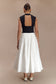 The Jemima Sleeveless Cross Over Top is a stylish essential that effortlessly combines elegance with modern design. Featuring a flattering V neckline, this top enhances your décolletage while maintaining a chic silhouette. The fitted bodice provides a tailored look, perfect for highlighting your shape. An open back adds a touch of allure, making it ideal for both day and evening wear. With a convenient centre back zip, this top is easy to slip on and off, ensuring a comfortable fit. Pair it with the Jemima Cotton Midi Skirt for a coordinated ensemble that radiates sophistication and style.