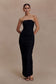 The JIANNA Strapless Mesh Maxi Dress is the embodiment of sleek, structured sensuality. Designed with a straight strapless neckline and fully gathered mesh detailing throughout, it creates a soft, contouring effect that flatters every curve. Internal boning provides subtle structure and support, while full lining ensures a smooth, sculpted finish. Completed with a back zipper closure and leg opening for ease of movement, this bodycon silhouette delivers timeless allure with modern refinement.