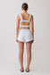 The JOSEPHINE Cotton Shorts With Waistbands bring tailored structure to a warm-weather silhouette. Cut to a flattering mini length, they sit cleanly at the waist, highlighted by statement button detailing along the waistband. A discreet side zip closure ensures a seamless fit, while the fully lined interior provides comfort and polish. Crisp yet effortless, this pair delivers modern refinement with subtle edge.