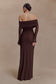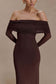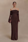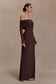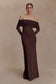 Off Shoulder Mesh Maxi Dress - Dark Brown